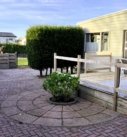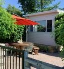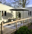 Het chalet is gelegen op een ruim perceel, overwegend bestraat en keurig ingericht. Grenzend aan het chalet een ruim houten terras.