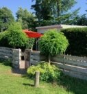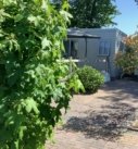 In de tuin een geïsoleerde schuur met hierin de geiser met elektronische ontsteking.