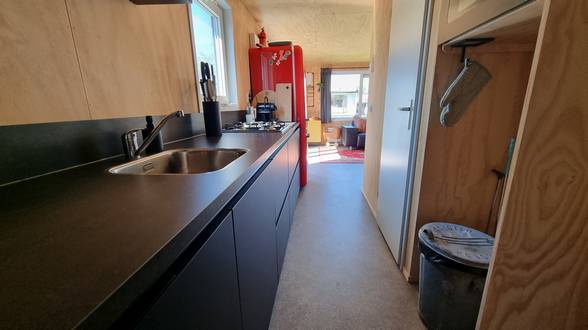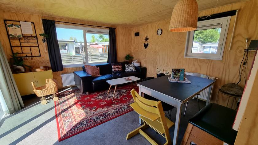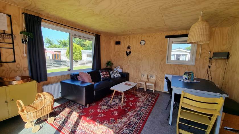 Het chalet, dat geschikt is voor een gezelschap tot 6 personen, is smaakvol ingericht in een vintage-stijl en leent zich bij uitstek voor strandvakanties met het gezin. Door o.a. centrale verwarming, airconditioning en vliegenhoren kunt u ook in het voor en na seizoen comfortabel verblijven. De moderne keuken is uitgerust met een 4 pits gasfornuis een grote (SMEG) koel-vriescombinatie en een vaatwasser.