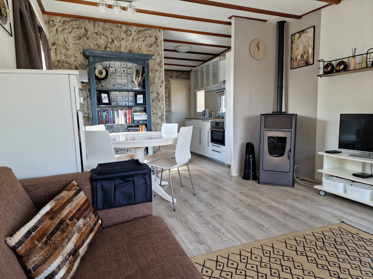 Op slechts één minuut loopafstand van het strand, met de receptie en campingwinkels vlakbij, geniet u van zowel privacy als gemak. Aan het water en naast het chalet bevindt zich een groot terras, ideaal om te ontspannen en te genieten van de rust en het uitzicht.