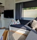 Chalet K32 is oorspronkelijk een stacaravan, maar is enkele jaren geleden grondig geïsoleerd en aan de buitenzijde voorzien van een kunststof afwerking. Deze aanpassingen zijn professioneel en met hoogwaardig materiaal uitgevoerd, inclusief kunststof raam- en deurkozijnen met thermopane beglazing. Er is tevens een luxe slaapkamer en een volledig betegelde badkamer aangebouwd. Woonkamer en slaapkamer zijn voorzien van apart regelbare vloerverwarming.