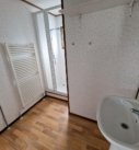 Badkamer met douchecabine en wastafel.