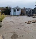 De ruime tuin is grotendeels betegeld.
