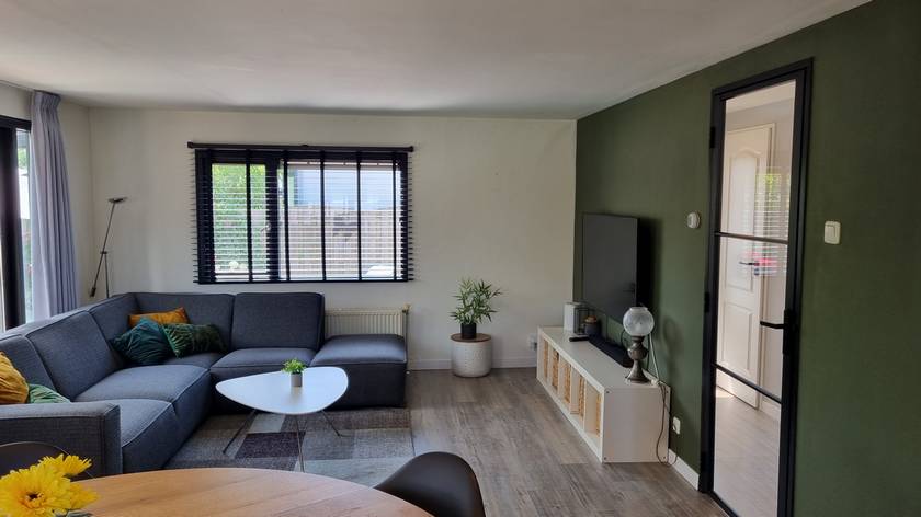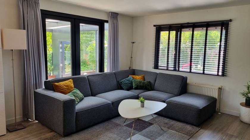 Woonkamer met open hoekkeuken.