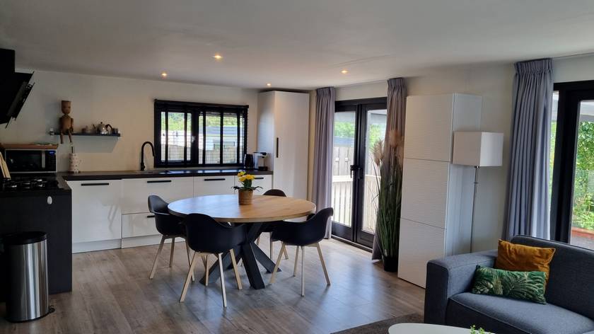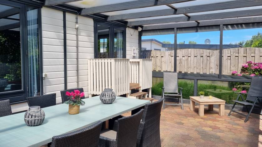 Dit chalet is één van de grootste en mooiste chalets, van camping de Holle Poarte. Het is gelegen aan de rand van het park en biedt veel privacy.