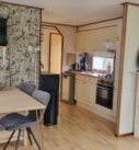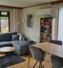 Het chalet, dat is gebouwd in 2002, heeft een afmeting van 10,5 x 3,6 meter, is gezellig ingericht en heeft een gashaard, airconditioning en een grote LCD-tv.