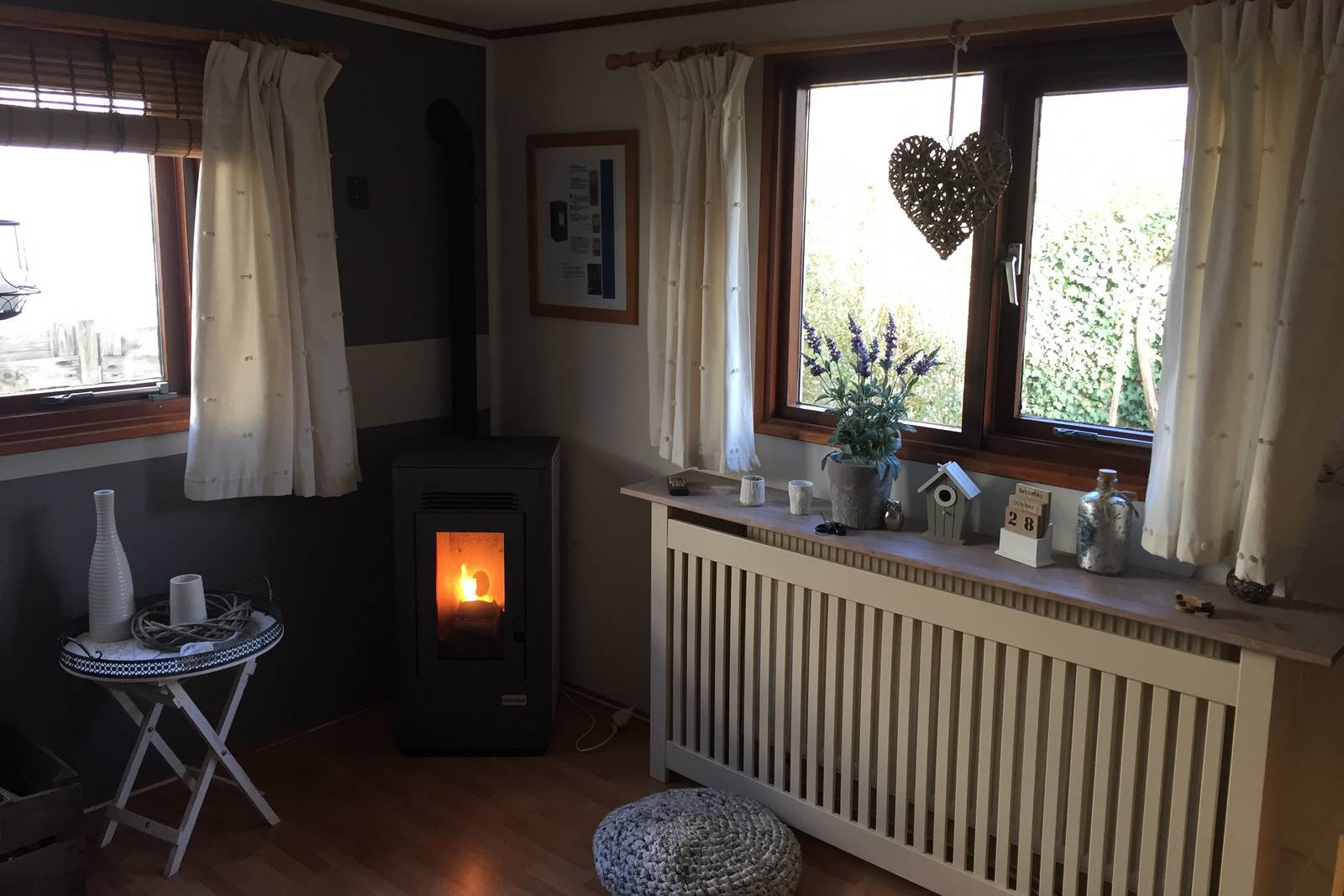 Het chalet is uitgerust met centrale verwarming en een pelletkachel en zodoende ook uitermate geschikt voor de koudere perioden.