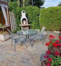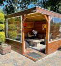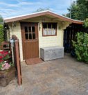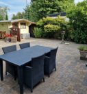 De tuin is eveneens zeer ruim, is volledig omheind en biedt veel privacy. Naast een opbergschuur is er ook een geheel afsluitbare overkapping aanwezig van 3,6 x 3,6 meter. Hierin staat een luxe lounge-set.