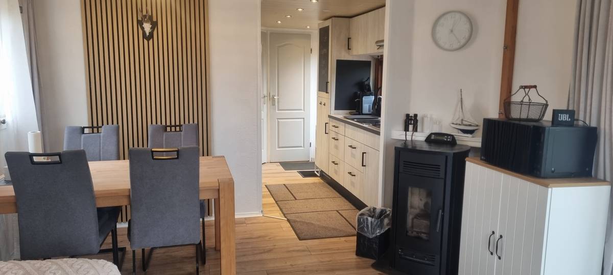 Het chalet wordt verwarm met een pellet-kachel en het warm water komt uit een Valliant gasboiler. De verlichting is smaakvol led voor een laag stroomverbruik