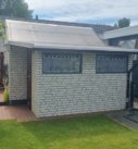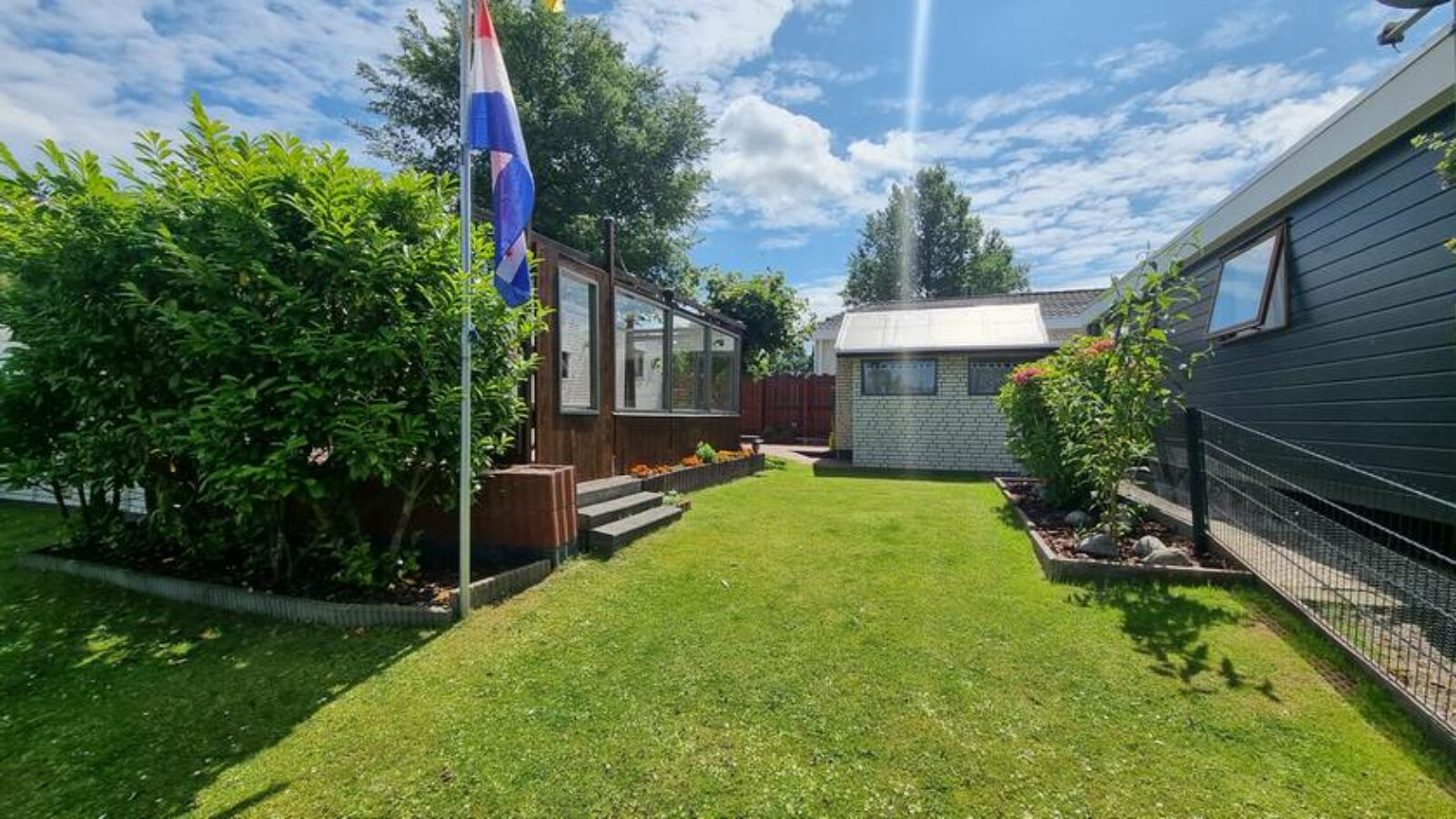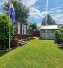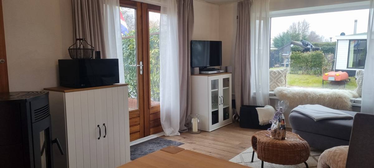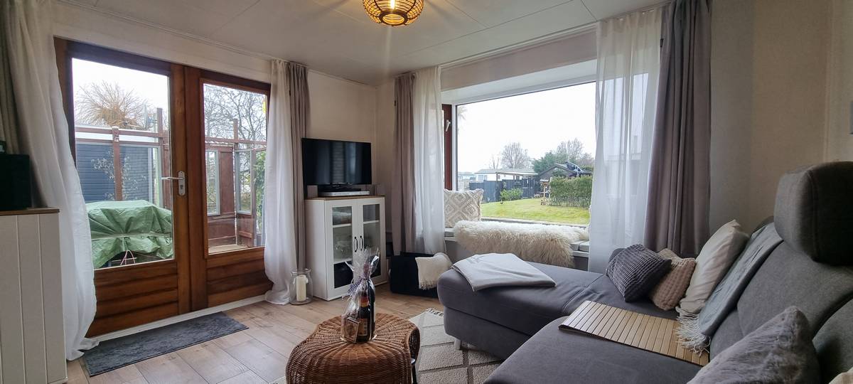 Op het ruime perceel, aan het water, staat een flinke schuur met fietsen, gereedschap en een grasmaaier welke bij de inboedel van het chalet horen. Op het terras kan schaduw worden gecreëerd door een groot zonnescherm en luwte door een vast windscherm.