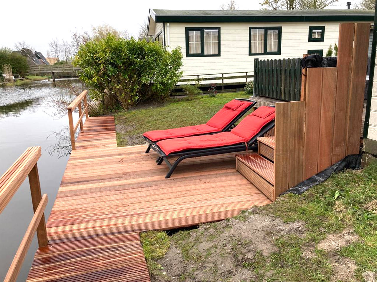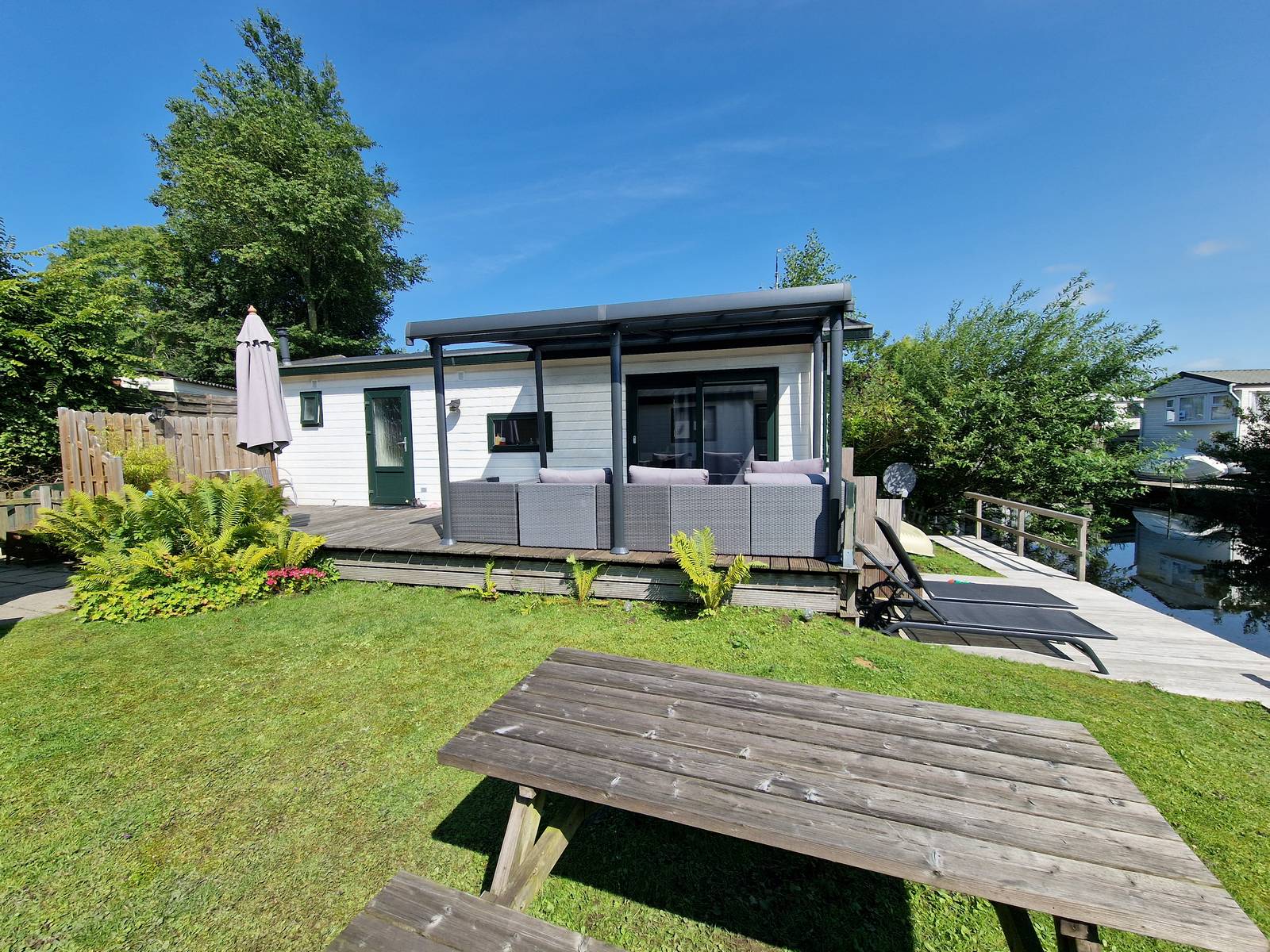 Komfortables chalet in einer ruhigen und schönen Lage am Wasser.