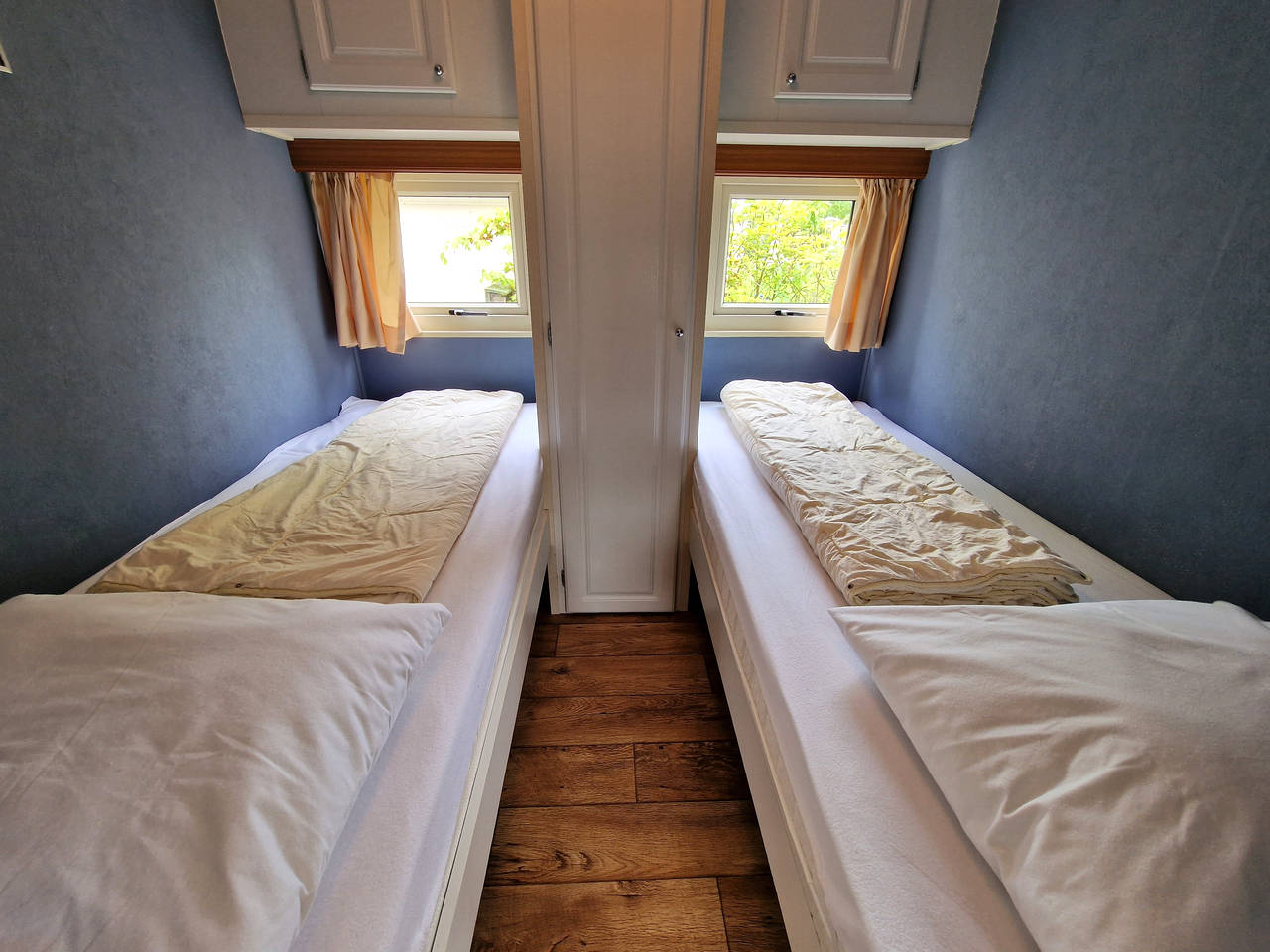 Schlafzimmer mit zwei Einzelbetten (80×200).