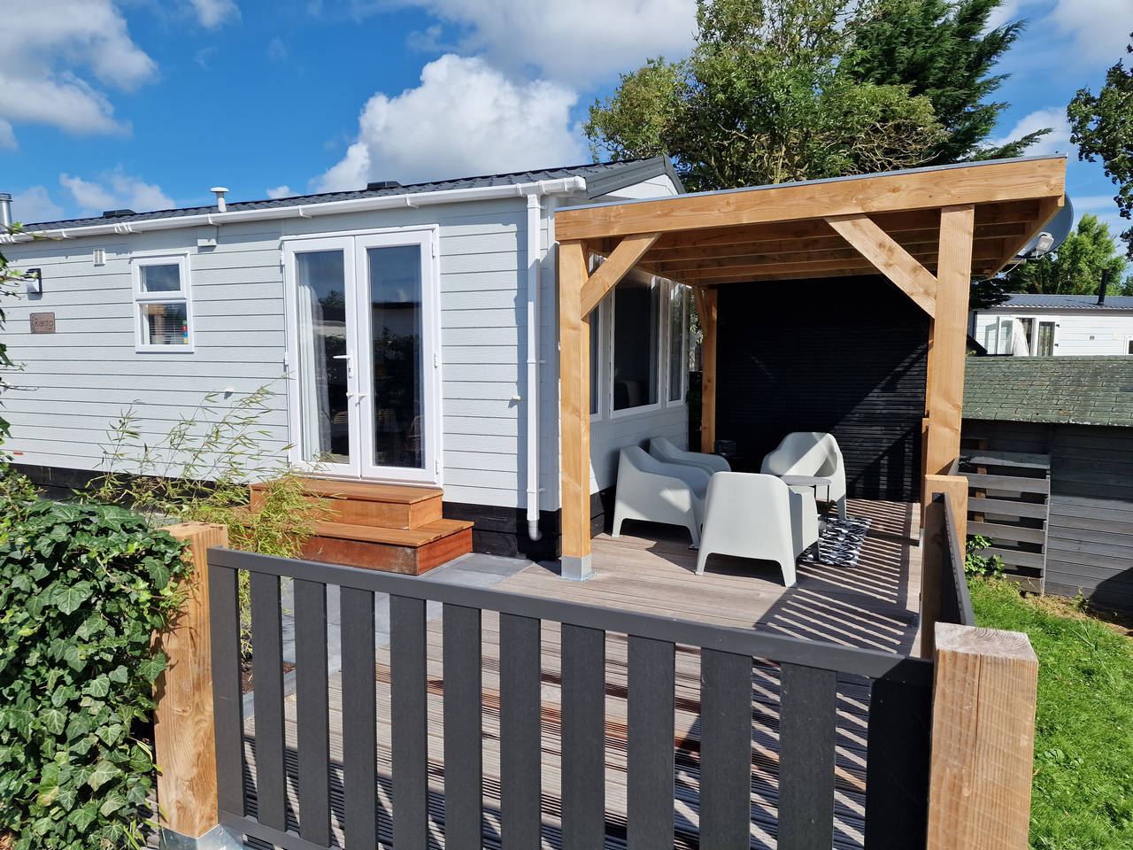 Buiten kunt u ook prima vertoeven op het houten vlonderterras. De aanwezige overkapping zorgt er voor dat u indien gewenst in de schaduw of bij regen van uw uitzicht kunt genieten.