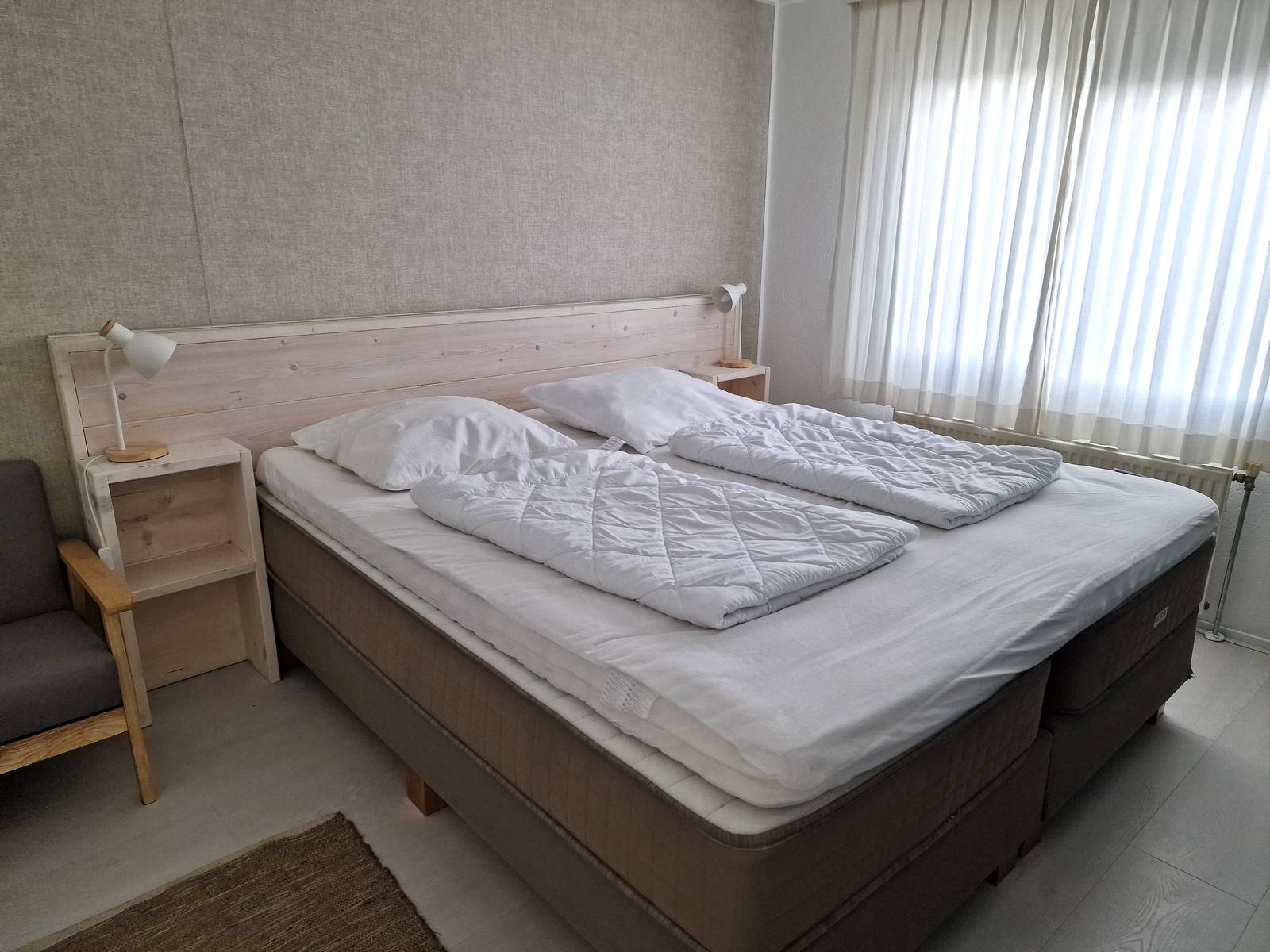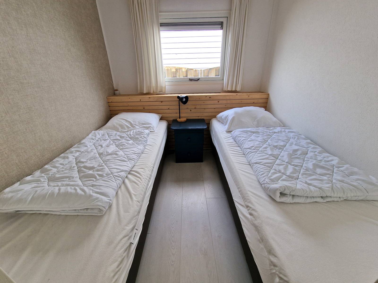 Tweede slaapkamer met twee boxspring eenpersoonsbedden (90 x 200) welke ook tegen elkaar kunnen worden geplaatst.