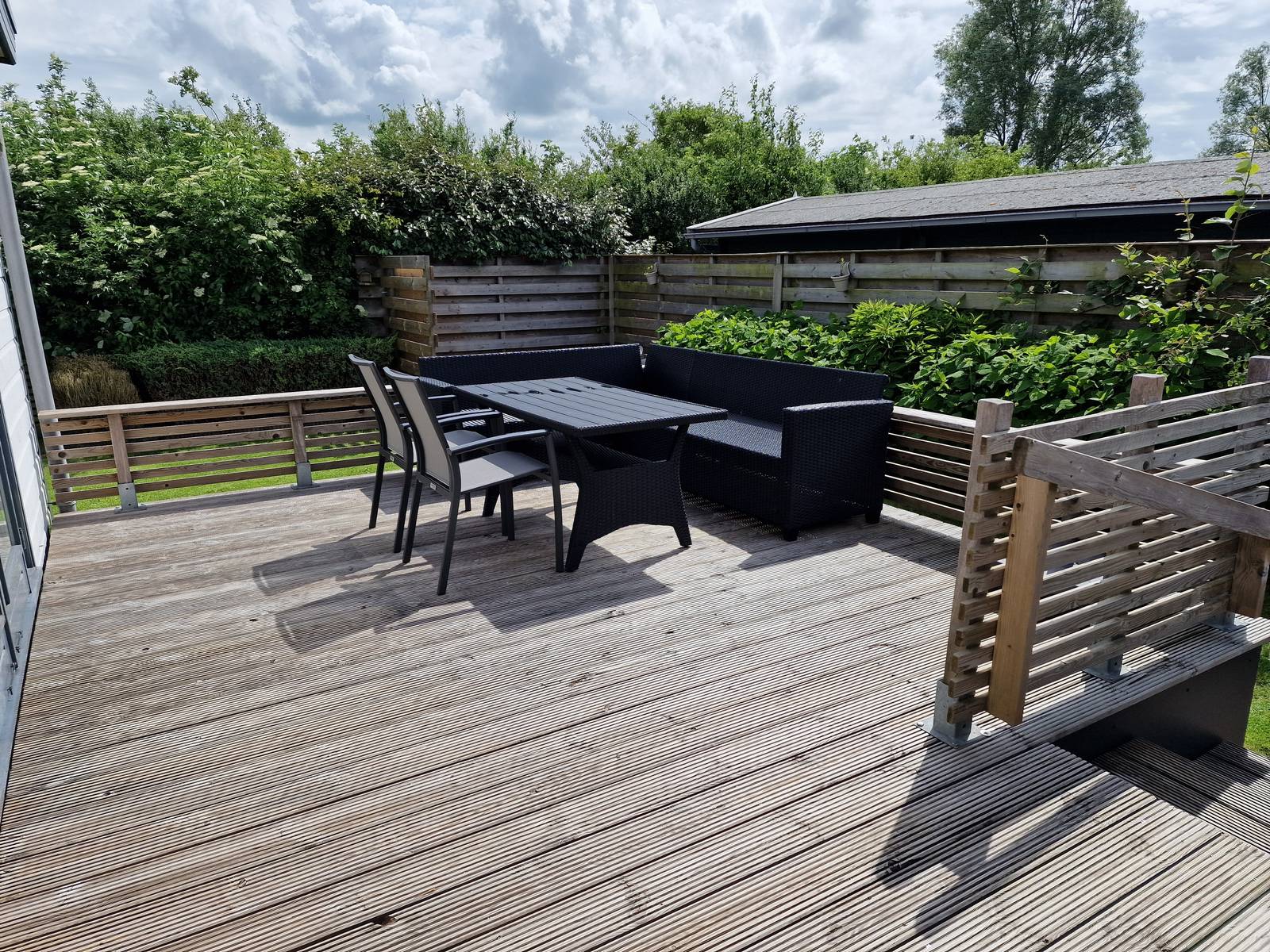 In de tuin een ruime schuur voor het opbergen van bijvoorbeeld uw fietsen en surfspullen.