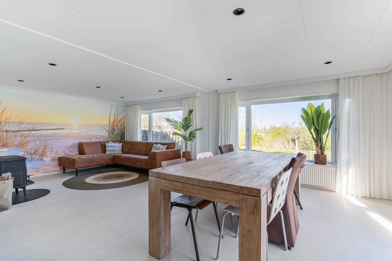 Zeer ruime woonkamer met zowel centrale verwarming als houtkachel.
