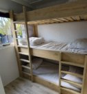 Kleine slaapkamer met driepersoons stapelbed (90×200).